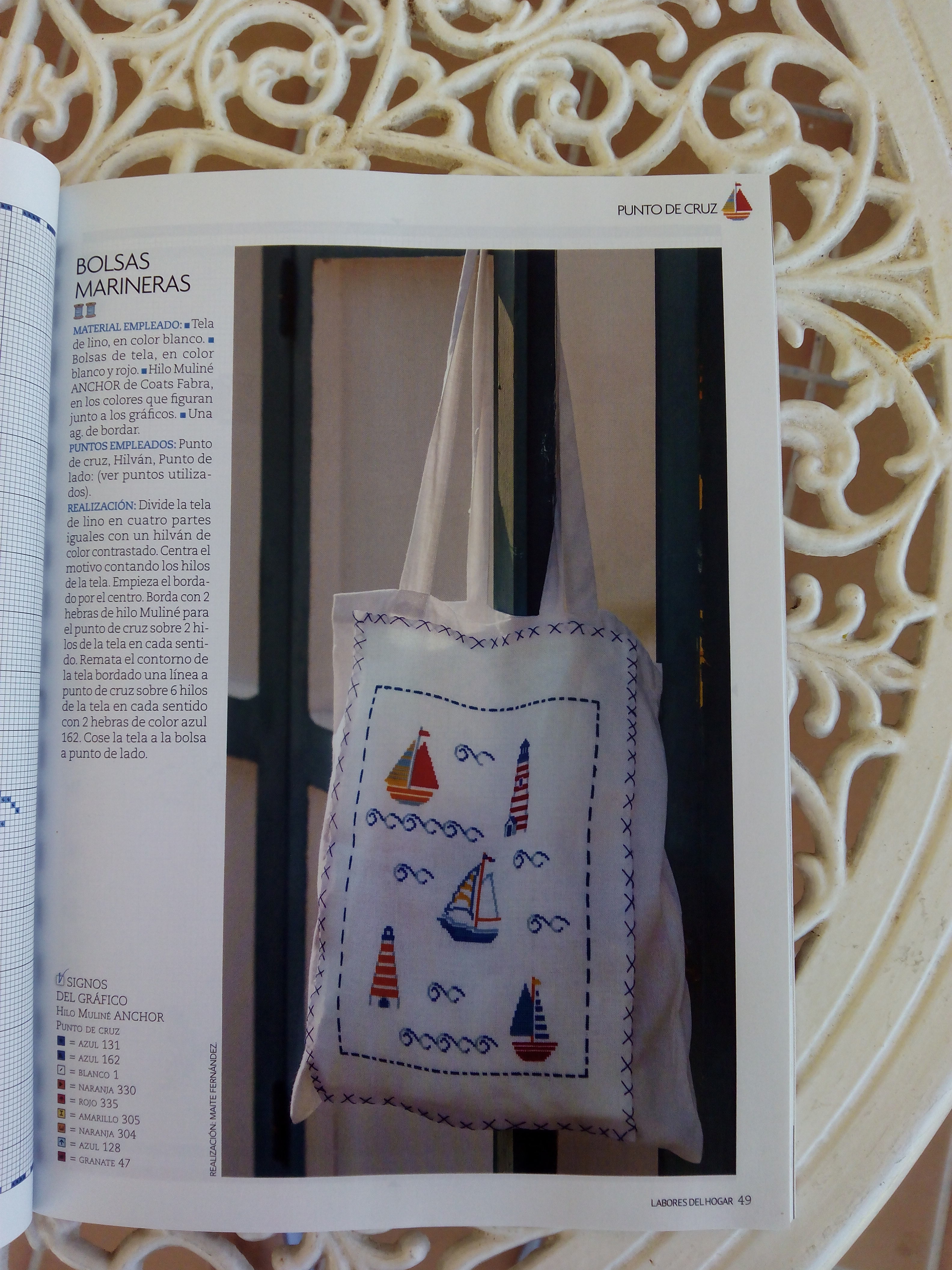 La revista quería que diseñara y bordara cuatro cuadros con motivos marineros, inspirados en Biarritz, pero con los colores de moda de este verano: coral, amarillo y azul turquesa.