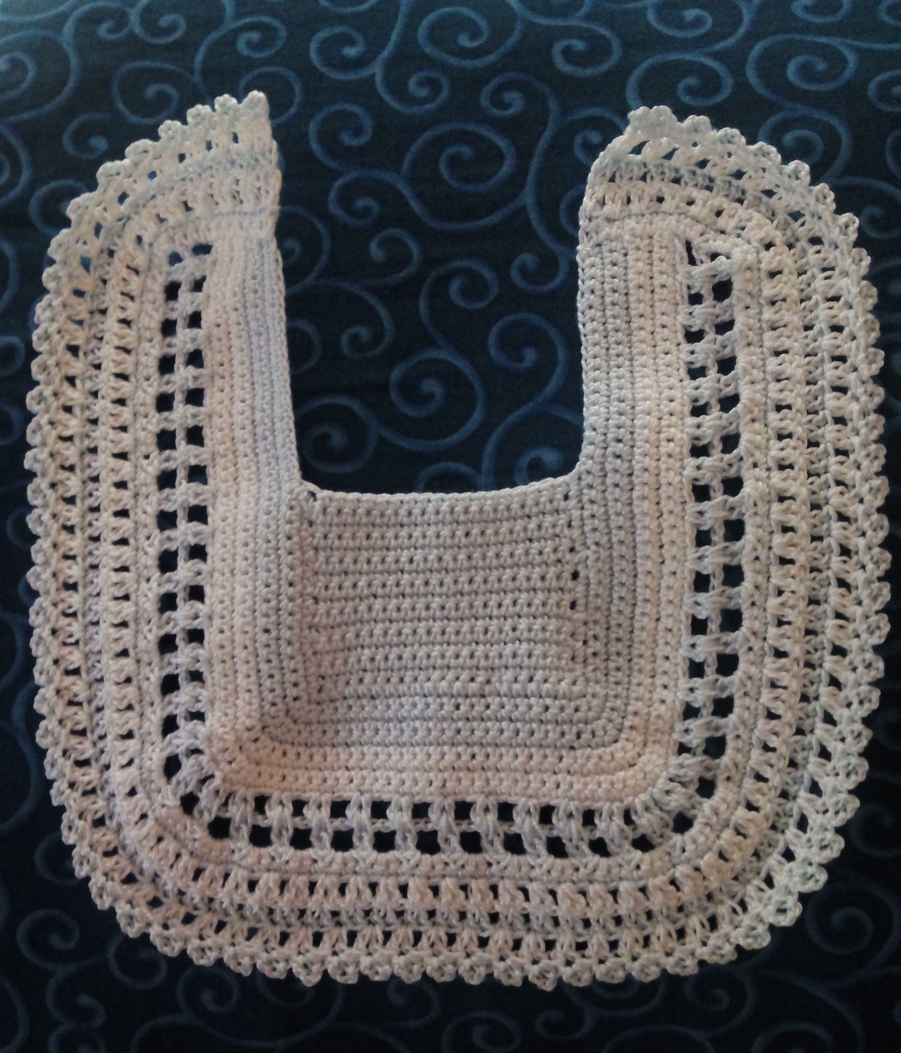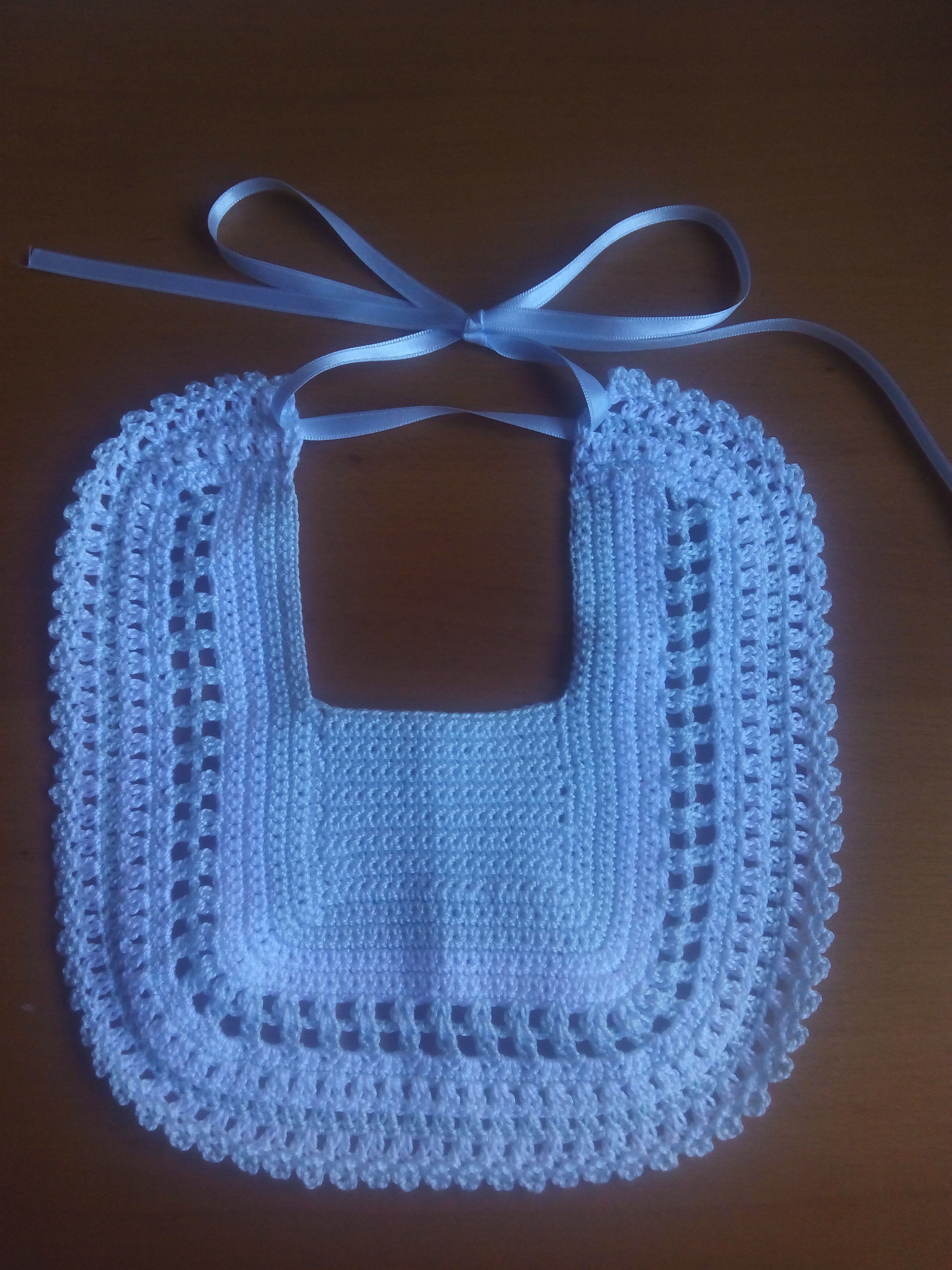 today I’ll show you the second part of the present I gave my friend Nuria. Some years ago, she was mesmerized by a crochet baby bib that I made using a perle thread, so I decided to give her one for her baby boy in addition to the baby shawl.