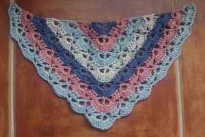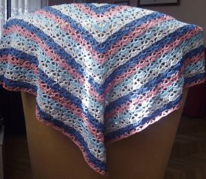Como continuación de la publicación de la semana pasada, pese al calor, hoy os traigo un chal que hice con la lana sobrante de la manta de Marcos, y que regalé a su mamá, para que vaya a juego con el bebé.