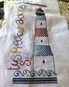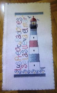 El diseño es del libro «Bord de Mer au point de croix» de Anna Field, y terminé dándole un toque personal con esta frase.