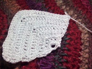 Posteriormente, mediante falsos puntos se tejen las vueltas de forma que queden las ramas triangulares y se vuelven a realizar los aumentos hasta que llegar hasta la forma definitiva, compuesta por tres triángulos.