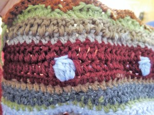 Y aquí las primeras vueltas con puntos altos, granny stripes y comienzo de Catherine’s wheels: