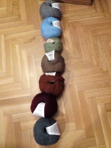 The first step is to choose the kind of wool and the colours. I’ve chosen Merino wool (55%) with acrylic to avoid itching. The brands are Katia and DMC. They are quite loving. The order of colours is very important at the beginning of the project, but after that you can go on combining them, taking into account the stitch you are using.