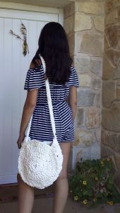 La cobertura rural que empeora cada año, me ha hecho imposible enseñaros este último proyecto en vivo y en directo. Ahora he «pillado» WiFi y os lo puedo mostrar. Como veis, se trata de un bolso de verano confeccionado en trapillo blanco de algodón.